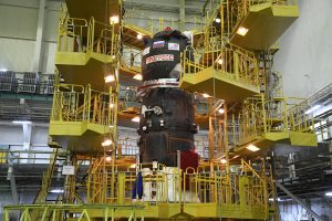 Le cargo Progress MS-13 sur son stand de préparation à Baïkonour. Progress MS-13, le cargo qui va rejoindre l’ISS, poursuit sa préparation. Aujourd’hui le vaisseau spatial a été assemblé avec le compartiment de transfert (encore appelé adaptateur) qui fait la liaison avec le troisième étage du lanceur (de diamètre plus faible) et permet également la … Lire la suite de Progress MS-13: lancement le 6 et arrimage le 9 décembre