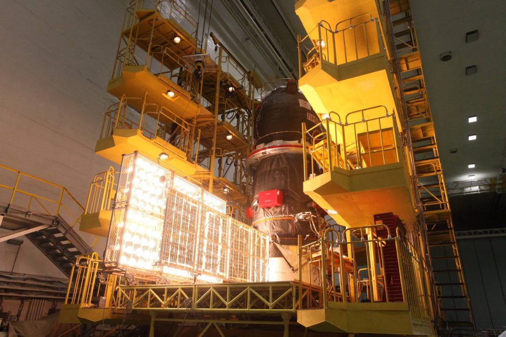 Mise en place de la plateforme d’accès aux panneaux solaires. Au cosmodrome de Baïkonour, la dernière étape de la préparation pré-vol du véhicule cargo de transport Progress MS-17 se poursuit. Dans le bâtiment de montage et d’essai du site n°254, une opération planifiée de contrôle des batteries solaires du système d’alimentation électrique embarqué du vaisseau a … Lire la suite de Vérification des panneaux solaires de Progress MS-17 à Baïkonour