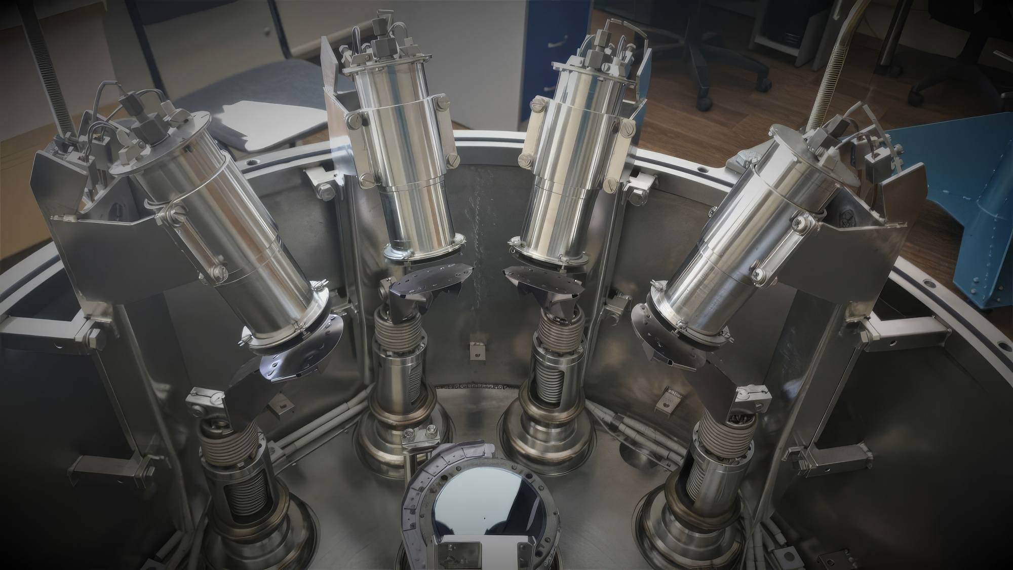 Dans l'espace, il est beaucoup plus facile d'obtenir les paramètres de vide nécessaires et il est également possible d'utiliser une seule chambre pour déposer tous les éléments.