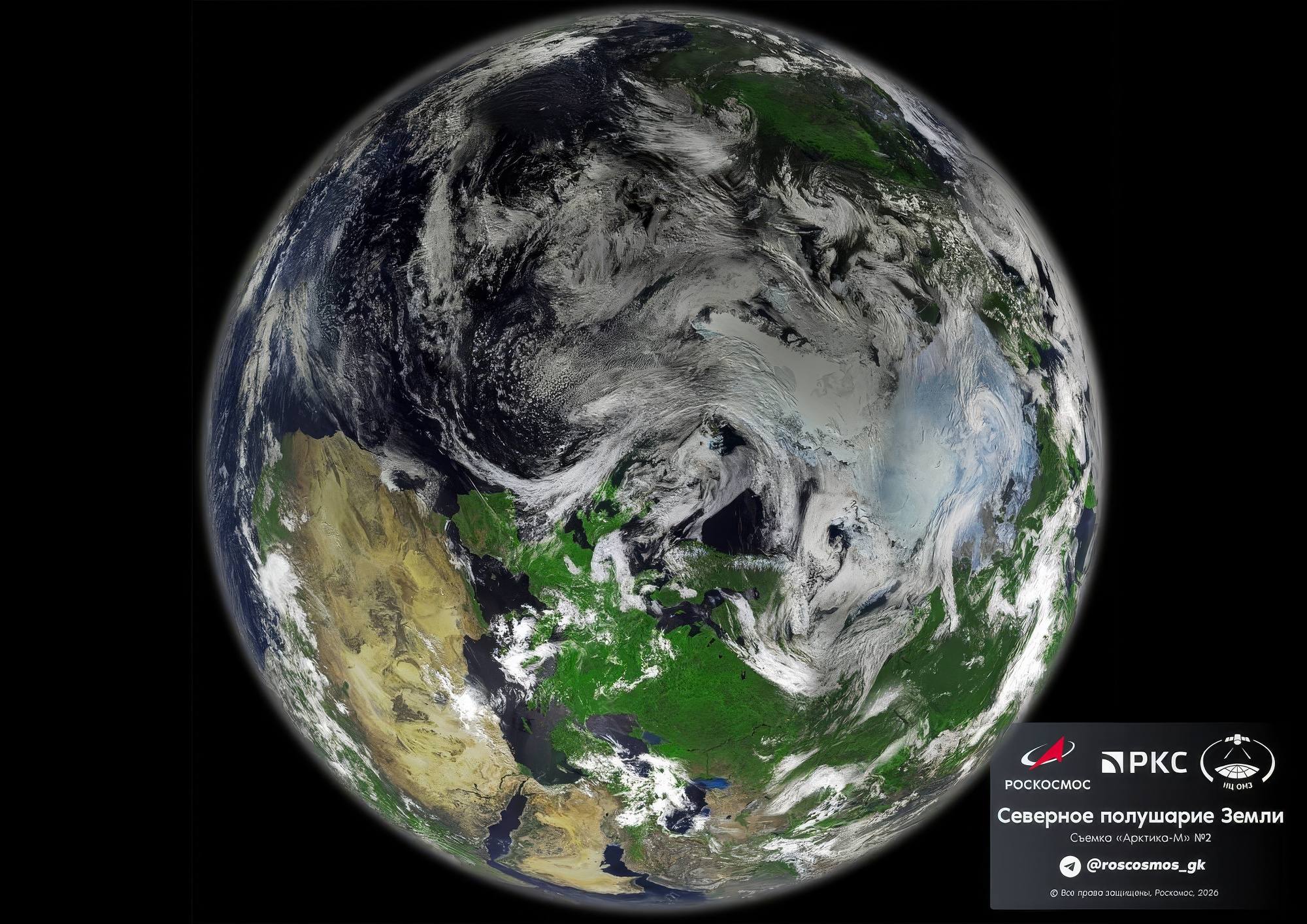 Cette image montre l’hémisphère nord de la Terre, capturée par le satellite Arktika-M n°2.