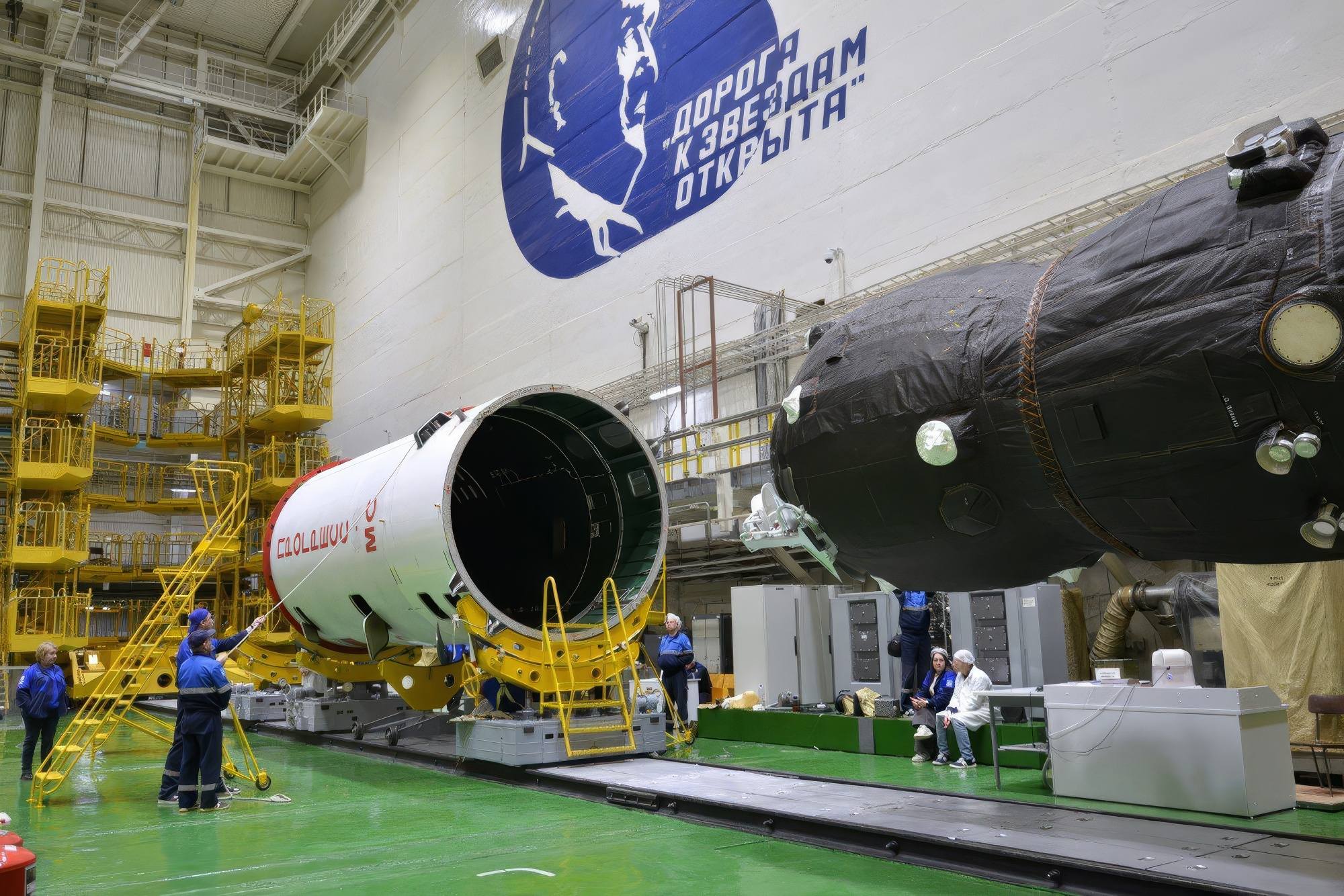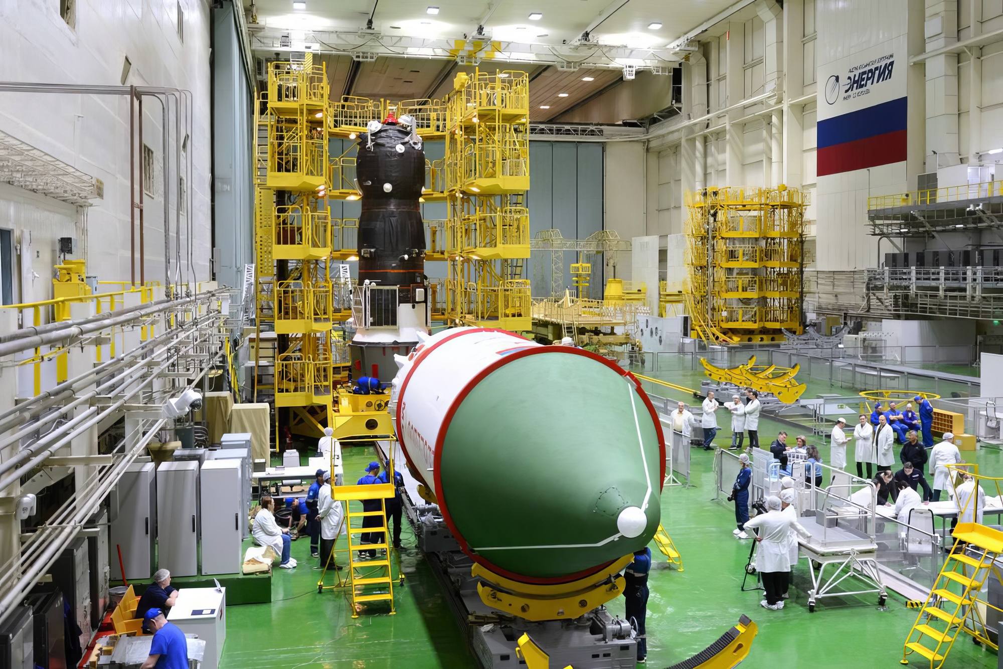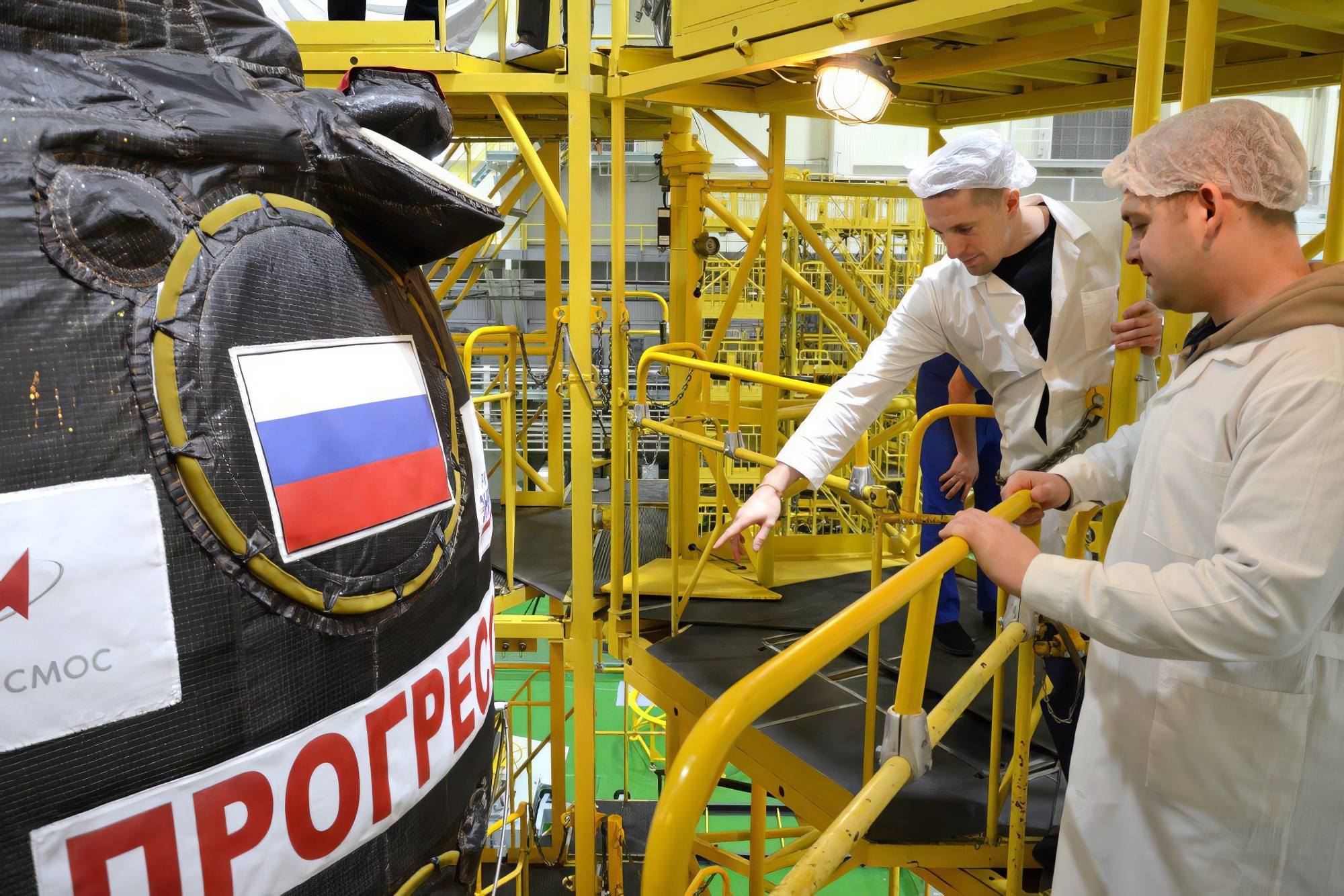 Avant de placer le vaisseau sous la coiffe protectrice, les spécialistes de RKK Energuya ont procédé à une dernière inspection visuelle minutieuse de tous les équipements. Après cette opération, retirer le vaisseau de la coiffe n'est pas impossible, mais cela perturberait le lancement.