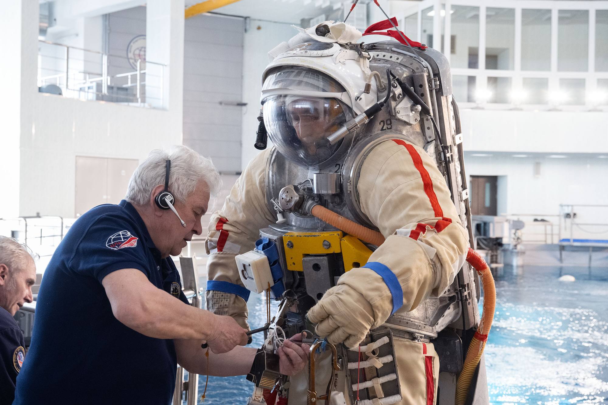« Le 25 mars 2026, les membres russes de l'équipage principal de la mission ISS-75 ont effectué une séance d'entraînement dans l'hydrolaboratoire afin de se préparer aux opérations d'activité extravéhiculaire ciblée (EVA-67). La principale tâche que Pyotr Doubrov et Anna Kikina accompliront lors de cette sortie extravéhiculaire, en conditions réelles de vol spatial, consiste à remplacer l'un des deux panneaux régulateurs de débit de fluide du système de gestion thermique du bloc fonctionnel et cargo Zarya du segment russe de l'ISS », indique le communiqué.