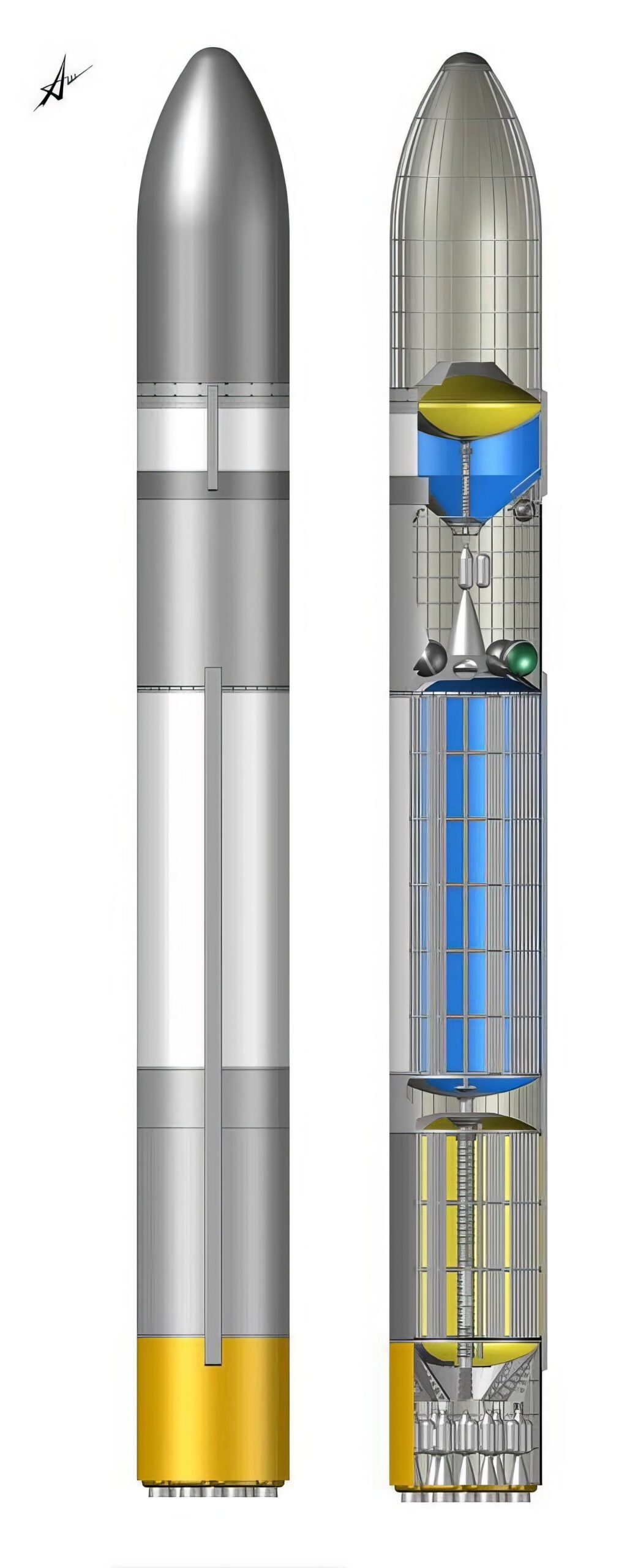 Sur le premier étage, il est prévu d'utiliser 12 moteurs, et sur le deuxième, un seul, qui fonctionneront avec un carburant écologique.