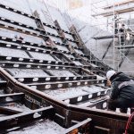 Alors qu’il fait toujours très froid (entre -23 et -29°C) à Tsiolkovsky (anciennement Uglegorsk), ville où est situé le cosmodrome Vostochny, le revêtement d’acier du carneau commence à être mis en place. Les spécialistes de l’entrepreneur du Centre d’exploitation des infrastructures spatiales au sol (TSENKI, qui fait partie de Roscosmos) ont commencé les travaux d’installation…