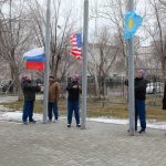 Alors que les cosmonautes et astronautes hissaient les drapeaux, lors de la traditionnelle cérémonie marquant le début officiel de la préparation finale, le soyouz, lui, était à la station pour le remplissage de ses réservoirs. Quant aux membres de l’équipage de réserve ils visitaient le musée de Baïkonour où ils signaient un poster mural et…